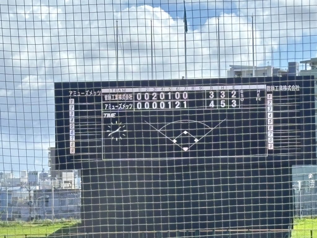 スコア:菅原工業 株式会社 3 - 4 アミューズメッツ 敗戦