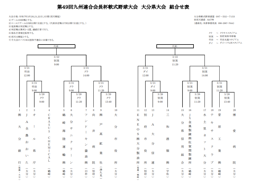 第49回 九州連合会長杯 大分県大会 組み合わせ決定のお知らせ
